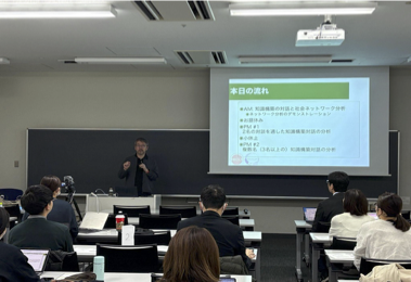 静岡大学/RECLS(学習科学研究教育センター)の大島純氏が講師を務め,前半は知識構築対話の社会ネットワーク分析の背景や視点,KBDeXの開発秘話や主な機能について講義を行いました..後半はサンプルの仮想データをKBDeXを用いて実際に分析するワークショップを行いました.具体的には,集団知の進展とその要因を探索的に分析することを目的に,KBDeXの主な機能をステップバイステップで実行しながら仮想データを分析し,得られた解釈や考察を小グループ内で共有しながら,KBDeXの利用方法を学ぶだけでなく,参加者各自の研究への活用の可能性について意見交換を行いました.