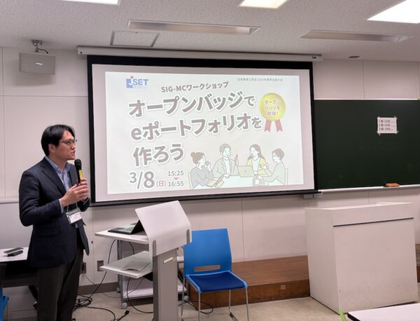 SIG記事【開催案内】SIG-MCワークショップ 「オープンバッジでeポートフォリオを作ろう!」開催報告 開催報告 2026/03/17 【開催報告】SIG-MCワークショップ 「オープンバッジでeポートフォリオを作ろう!」 2026年春季全国大会において、SIG-MC(マイクロクレデンシャル)はSIGセッションを開催いたしました。 SIGセッションでは、オープンバッジを使ったeポートフォリオの作成を体験することで、オープンバッジの機能や可能性について理解し議論するワークショップを行いました。ワークショップでは、冒頭のイントロダクションの後、参加者はワークショップへの参加を証明する「参加バッジ」を、Open Badge Passportというオープンバッジのウォレットに登録して受け取りました。続いて、マイクロクレデンシャルとオープンバッジについての基礎を学ぶ講義を受けた後、簡単なクイズを受講し、講義の内容について理解したことを示す「達成バッジ」を受け取りました。続いて、参加者が受け取った「達成バッジ」を相互に承認し合う「エンドースメント」を行い、オープンバッジを相互に承認する機能を体験した後、オープンバッジの機能と可能性について意見交換を行いました。当日は13名の方にご参加いただき、セッションは盛況のうちに終えることができました。参加者からは「マイクロクレデンシャルやオープンバッジ導入の可能性について考える良い機会になりました。」「とても楽しく参加できました。」などの感想をいただきました。また今後の活動に関して「オープンバッジの活用に関する実践事例の共有をいただけるようなセッション」や、「バッヂと学びの体系化をどのように構造化するのかを、実体験できるようなワークショップ」などの開催希望がありました。皆様からいただいたご質問やコメントは、今後のSIG-MCの活動に活かしてまいります。 当日のスライドはこちらよりダウンロード可能です。 SIGセッションにご参加いただいたみなさま、ありがとうございました。