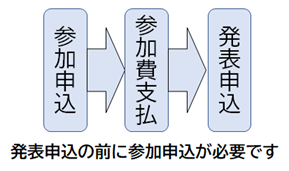 [発表者]が年会費を納入されていない場合は,発表申し込みを行えません.また,[発表者]には,事前に大会参加費をお支払い頂くことになっております.なお,大会企画委員会から発表を依頼した場合はこの限りではありません.